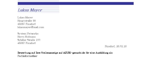 Du stehst kurz vor deinem Schulabschluss und möchtest bald in die Ausbildung starten? Klingt gut, dann brauchst du ja nur noch überzeugende Bewerbungsunterlagen. Das allerdings ist für viele die größte Hürde, schließlich haben Schüler in ihrem Leben in der Regel noch keine professionelle Bewerbung verfasst. Wir haben ein paar Bewerbungsmuster mit überzeugendem Anschreiben und aussagekräftigem Lebenslauf für dich zusammengestellt. So viel sei vorab schon mal verraten: Wichtig ist, dass du vermittelst, warum der Job und das Unternehmen zu dir passen. Nur so kannst du den Firmenchef oder die Personalabteilung von dir überzeugen. Ideal ist es, wenn du außerdem über deine Hobbys, ehrenamtlichen Engagements und eventuelle Berufserfahrungen durch Praktika schreibst. Bleibe dabei aber immer ehrlich, auch wenn du noch nicht ganz so viele Erfahrungen gesammelt hast. Wenn du vermitteln kannst, dass du unbedingt genau diesen Ausbildungsberuf in genau diesem Unternehmen haben willst, kann das auch schon überzeugen. Schau einfach mal in unsere Bewerbungsmuster rein, vielleicht ist ja sogar ein Muster für eine Bewerbung in deinem Ausbildungsberuf unter unseren Beispielen zu finden: