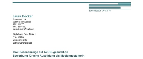 Und so geht's: Suche dir aus unseren Bewerbungsmustern die Anschreiben und Lebensläufe heraus, die dir am besten gefallen und die am besten zu deiner Traumausbildung, deinem Wunsch-Studium oder deinem Lieblings-Praktikumsplatz passen. Damit hast du eine ideale Ausgangsbasis für deine Bewerbung. Ideal ist es, wenn du dich an diesen Vorlagen orientierst: Lass dich inspirieren und verwende zum Beispiel einzelne Formulierungen, die dir gut gefallen. Du kannst auch eines der verschiedenen Layouts als Grundlage nehmen und individuell anpassen. Beachte aber bitte, dass du keines der Bewerbungsmuster nahezu unverändert übernimmst. Das haben im Zweifel schon mindestens ein dutzend andere Bewerbungswillige gemacht. Außerdem haben die Profis in der Personalabteilung viel Erfahrung mit Bewerbungsunterlagen und können gut einschätzen, ob das Geschriebene wirklich von dem Bewerber kommt oder eher nicht. Besser ist es, wenn du das Muster deiner Bewerbung individualisierst, denn nur so kannst du den Personalchef wirklich von dir überzeugen.