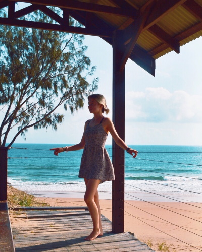 Am 29. November startete ich meine Reise von Toowoomba aus nach Hervey Bay. Die Stadt liegt an der Ostküste nördlich von Brisbane. Leider verbrachte ich dort nur einen Tag, besuchte den Fischerhafen und flanierte entlang der Promenade. Am nächsten Tag ging es weiter nach Bundaberg. Bekannt geworden ist die Stadt für ihre Rum-Destillerie, die weltweit Alkohol und alkoholfreie Limonaden exportiert. Für mich versprühte sie mit ihren vielen Pubs einen typisch australischen Charme. Ich übernachtete in einem kleinen verrückten Hostel mit schwedischem Einrichtungsstil. Das Zimmer war mit Konfetti, einer Giraffe und einem Surfbrett dekoriert. Am nächsten Morgen setzte ich meine Reise fort und checkte in Agnes Waters in einem Zimmer mit sechs Schlafgelegenheiten ein. Um mein Bett zu beziehen, musste ich mich durch den Dschungel der Rucksäcke und Kleidungsstapel kämpfen. Anfangs war das Hostelleben eine echte Herausforderung für mich. Man hat keine Privatssphäre und kann sich nicht ausbreiten, wie man möchte. Mittlerweile habe ich mich allerdings daran gewöhnt und ziehe sogar Hostels normalen Hotels vor – vor allem, wenn ich allein unterwegs bin. Man hat so immer Kontakte und lernt ständig neue interessante Menschen kennen. In Agnes Waters gefiel mir der Strand besonders gut. Und auch die kleine Surfbucht mit einem kleinen Surfercafé hatte es mir angetan.